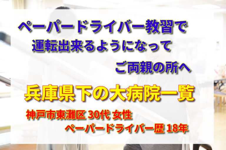 神戸市東灘区30代女性ペーパードライバー歴18年の挑戦 ※兵庫県下の大病院一覧は下にあります。 今回、口コミでペーパードライバー講習を受講されるのは神戸市東灘区のT様。 練習されるマイカーは、BMW、練習されるコースはおすすめコースの4時限(200分 […]