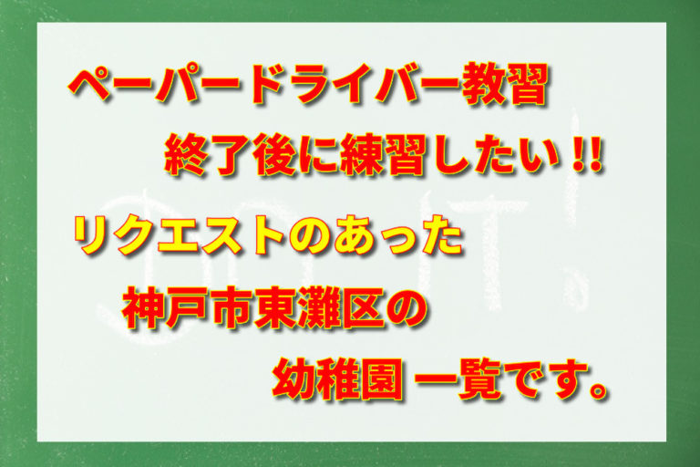 通う幼稚園に対応する危険予測運転が必要です。 ※幼稚園施設紹介は下にあります。 神戸市東灘区のM様 3回目の練習となりました。 最終日の練習は『総合運転』。 ご自宅から出発して 目標である 岡本駅・摂津本山駅・阪急西宮ガーデンズ・サンシャインワーフ神 […]